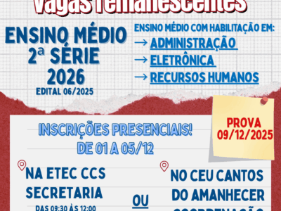 demais editais: etecccs.cps.sp.gov.br/vagas-remanescentes