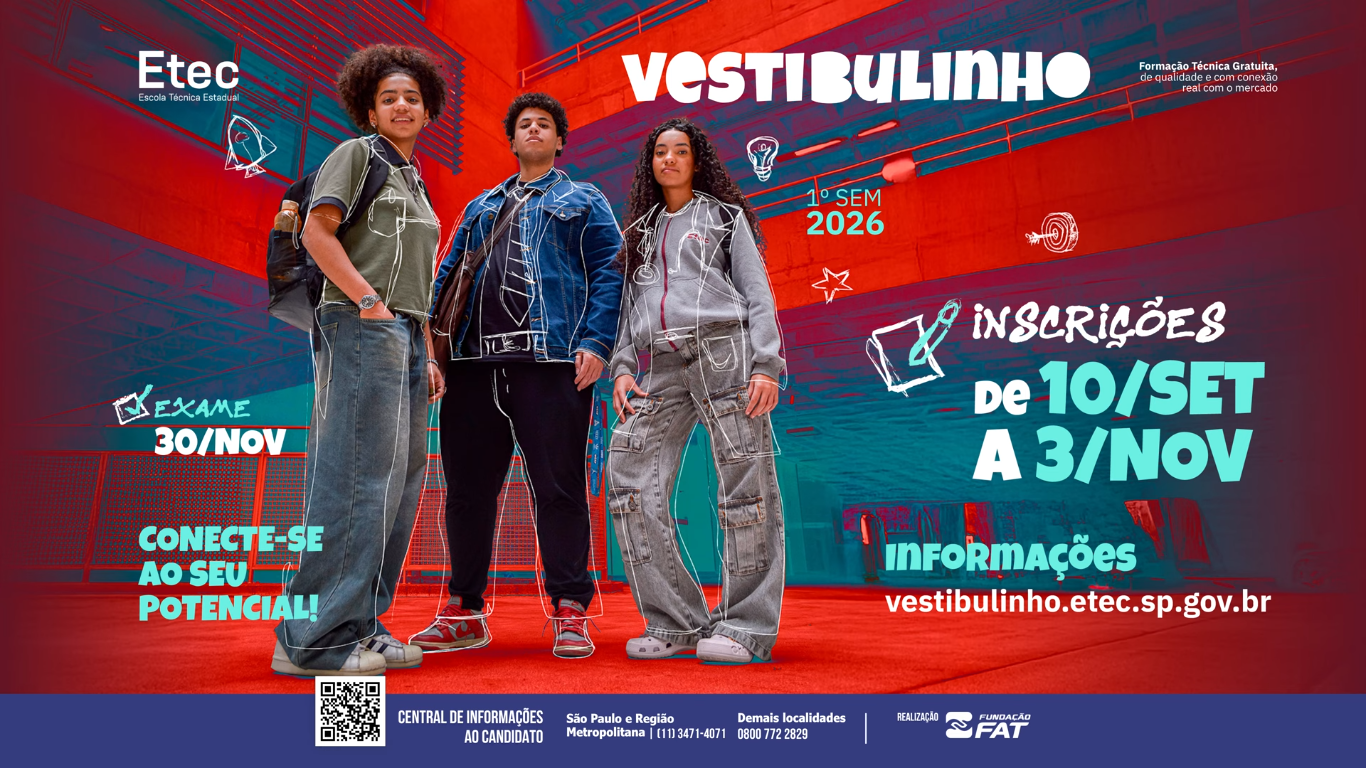 Estão abertas as inscrições para o Vestibulinho Etec – 1º Semestre de 2026!